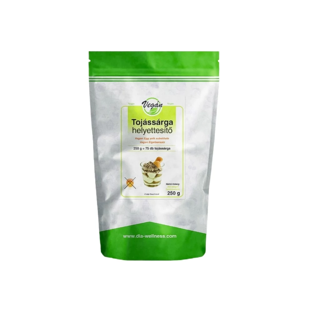Egyes ételek receptjeiben gyakran szerepel kizárólag a tojássárgája a tojásfehérjétől elválasztva. Ilyen esetekben a Dia-Wellness tojássárgája helyettesítő biztonságos megoldás mind az allergének elkerülése miatt, mind pedig az elkészült ételek tökéletes állaga érdekében. Ez a készítmény úgy lett kifejlesztve, hogy kimondottan a tojássárgája erejét legyen hivatott pótolni, valamint annak színét és konzisztenciáját utánozni, hogy se egészségügyi okokból, se vegán életmódból kifolyólag ne kelljen lemondanod a kedvenc ételeidről. Ha tojásallergiád vagy tojásintoleranciád van, akkor ez a tojássárgája helyettesítő készítmény nem csak sütemények sütésében lehet a segítségedre, de ennek köszönhetően akár ízletes vegán rántottával is színesítheted étrendedet. Ez a tojássárgája helyettesítő por vegetáriánus vagy vegán étrendekben használható olyan ételek készítéséhez, melyekben elengedhetetlen a tojás összetartó ereje.